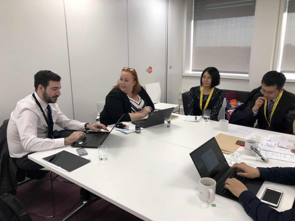 Mainly focused on the NQI research results, standards big data research and development, standards overseas promotion model and standards information cooperation, the delegation and the relevant BSI experts held a series of meetings. Liu Zhiyang first introduced the English-Chinese bilingual corpus of standardization and intelligent translation cloud platform. Peter Sissons, Head of the BSI International Affairs Department, pointed out that the development of the platform is of great significance, which is the only intelligent professional translation platform that can translate and edit standards texts online so far he saw.